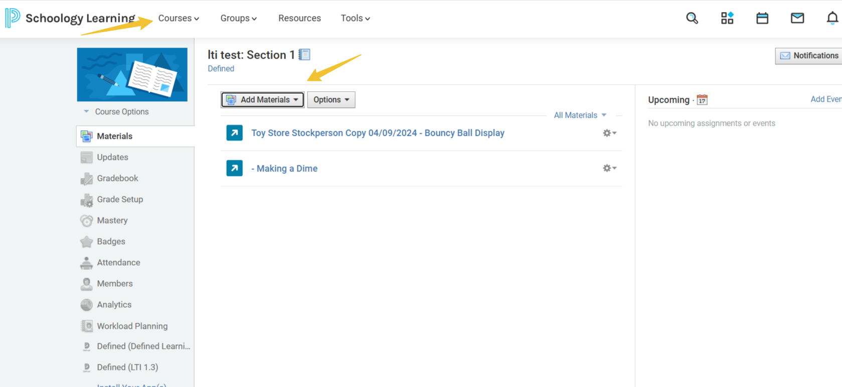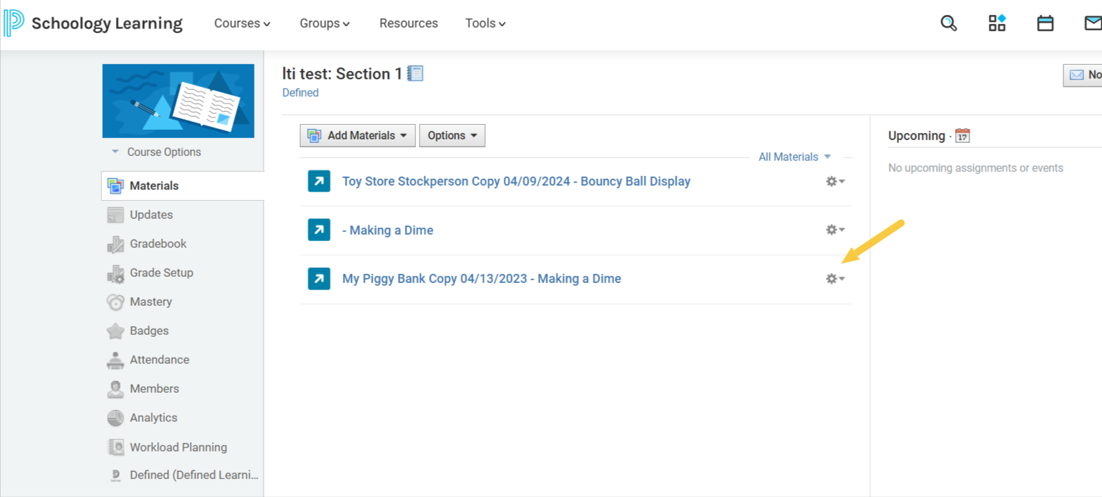 - After adding the Defined assignment (as described above), find it in your course materials.